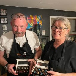 🍫 Du får givetvis ta hem de praliner (ca 25-30 st) som du gjort under kursen. Samt en bibba med chokladinfo och några recept.