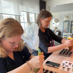 En grupp på 4-5 personer är en perfekt liten skara, där alla får skapa en egen pralinform med ca 25-30 praliner.